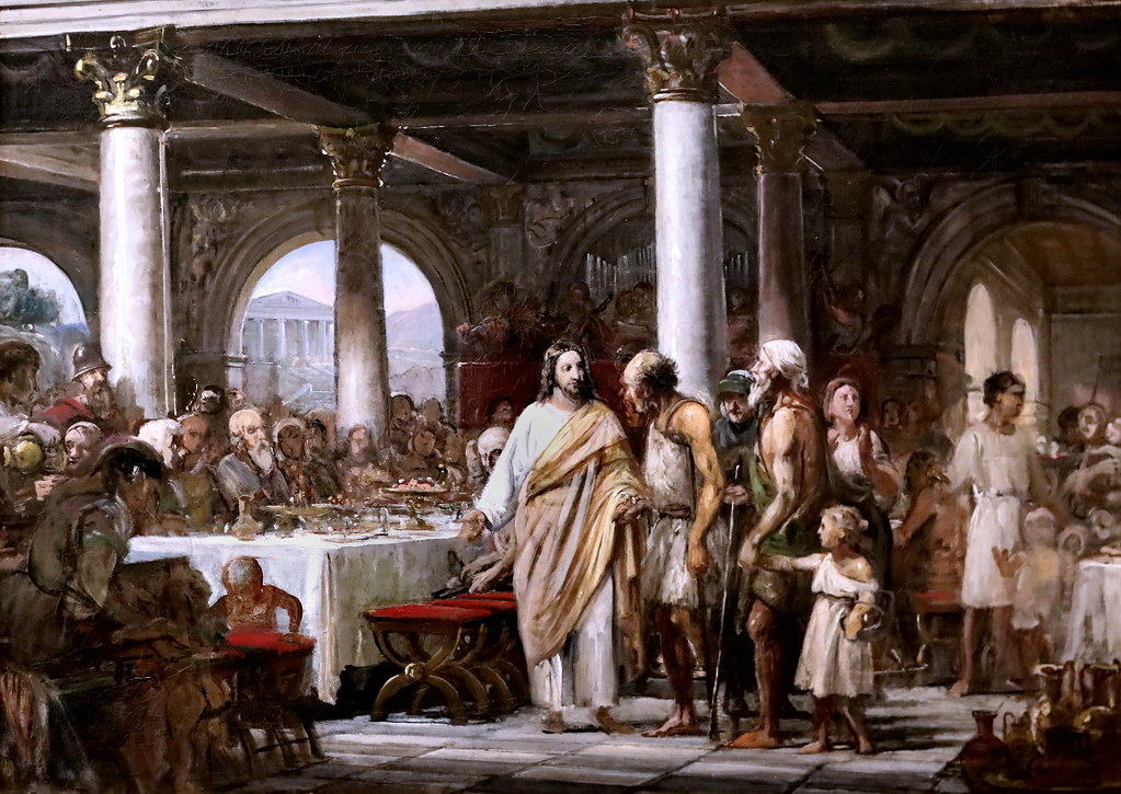 « Va-t’en vite par les places et les rues de la ville, et introduis ici les pauvres, les estropiés, les aveugles et les boiteux. »