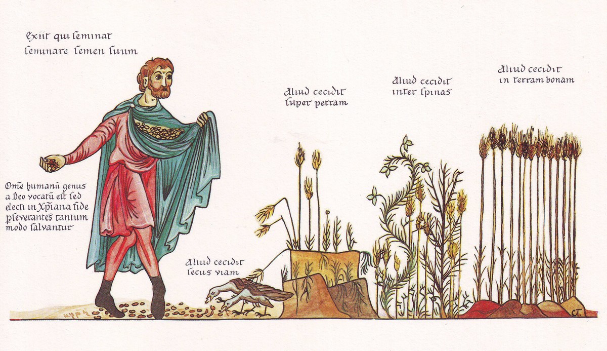 « Le semeur est sorti pour semer sa semence. Et comme il semait, une partie du grain est tombée au bord du chemin ; elle a été foulée aux pieds et les oiseaux du ciel ont tout mangé.