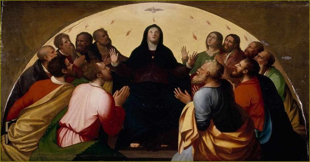 fais que notre prière en ce temps de la Pentecôte nous identifie avec les faiblesses de tous les hommes afin que, pleinement renouvelés par la paisible beauté du Visage du Ressuscité qui crée toute communion, nous puissions nous aussi réellement remplir notre vocation propre comme signe et sacrement du Royaume. 0, divin Paraclet, que brille en nous la Lumière véritable afin qu’en Elle nous puissions contempler Celui que nous osons appeler Père, grâce à Toi.
