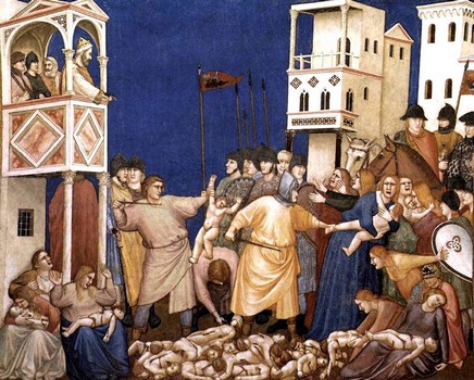 Lire la suite : Le massacre des InnocentsAlors Hérode, voyant qu’il avait été joué par les mages, fut pris d’une violente fureur et envoya mettre à mort, dans Bethléem et tout son territoire, tous les enfants de moins de deux ans, d’après le temps qu’il s’était fait préciser par les mages. Alors s’accomplit l’oracle du prophète Jérémie : « Une voix dans Rama…